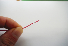 (ビニール部分だけを切って、銅線を出したいので、銅線まで切らないようにしよう。)